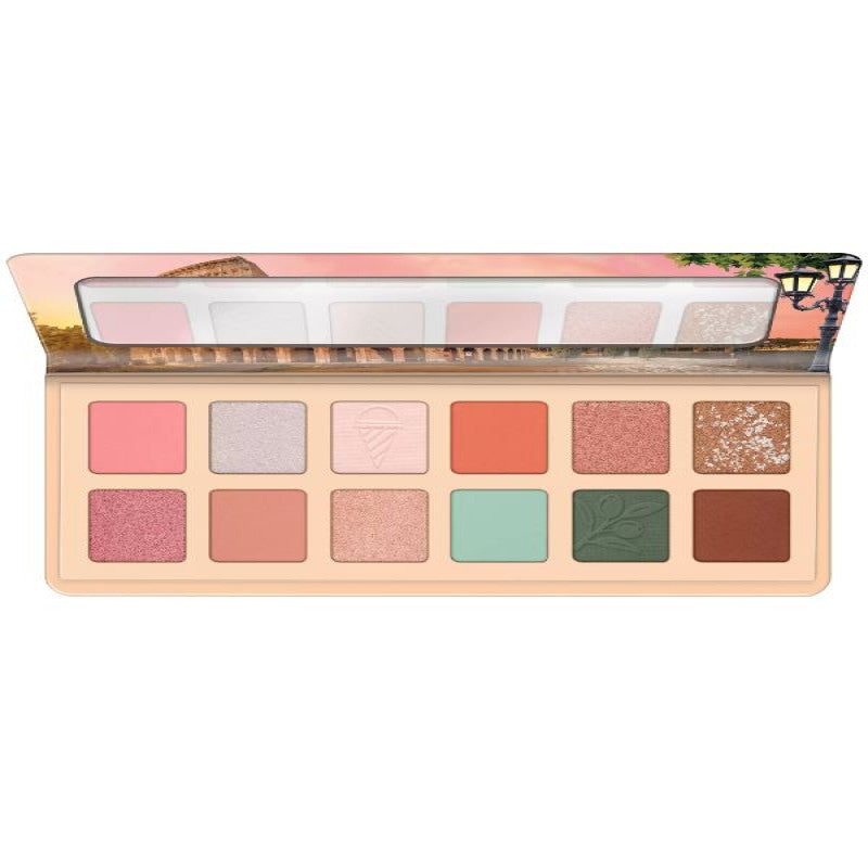باليت ظلال العيون المستوحاة من العاصمة الايطالية روما والتي تحتوي على 12 لون مركز وثابت بتدرجات مطفية منعشة وناعمة، لون واضح من المرة الاولى، خفيف الوزن وسهل في التنقل.
