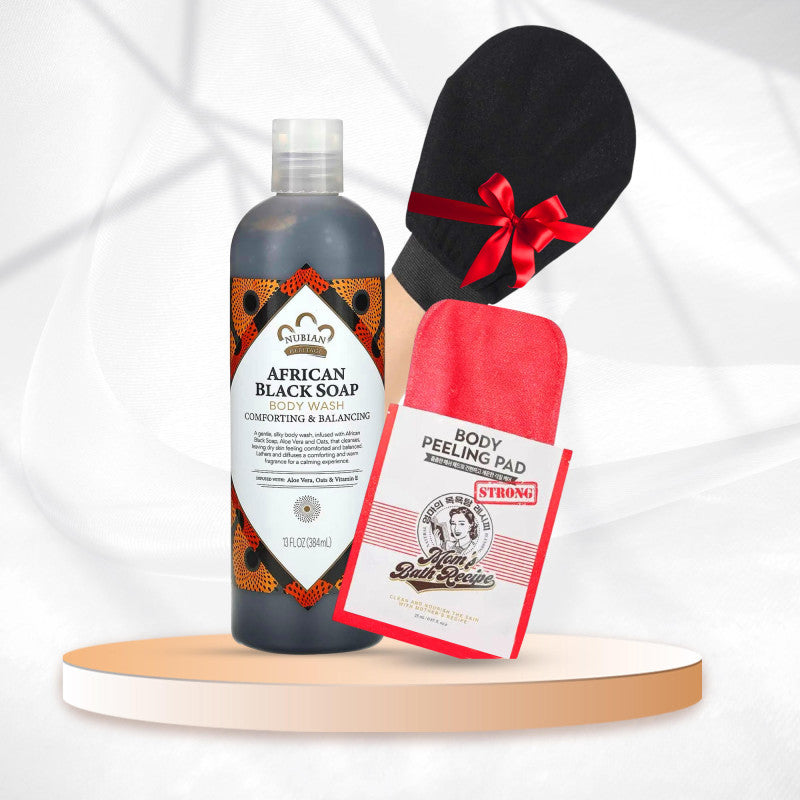 باقة العناية المثالية للتخلص من الجلد الميت، توحيد لون الجسم، وتنظيف البشرة بفعالية من خلال تركيبة منتجات عالمية مجربة وفعالة.