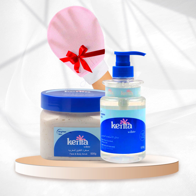 استمتعي بعناية فاخرة لجسمك مع باقة كينتا المغربية للعناية بالجسم، المصممة لتفتيح وتنعيم البشرة وتنظيفها بعمق، بمكونات طبيعية مستوحاة من أسرار الحمّام المغربي.