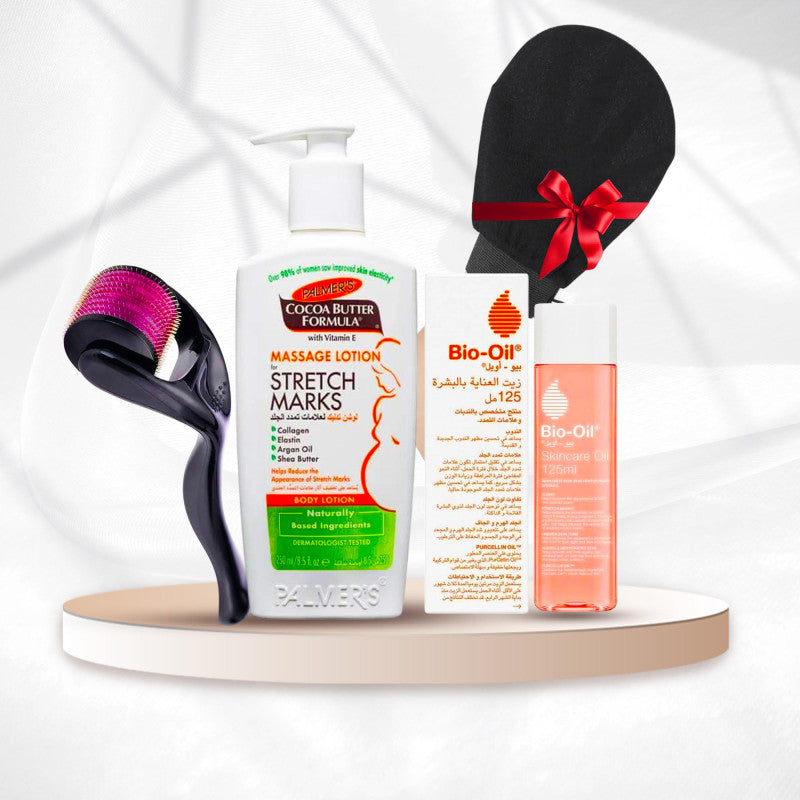 دلّلي بشرتك مع أفضل 4 منتجات مختارة بعناية لتقليل مظهر علامات التمدد، تنعيم الجلد، وتحفيز تجديد الخلايا. مثالي للنساء بعد الحمل أو عند خسارة الوزن.