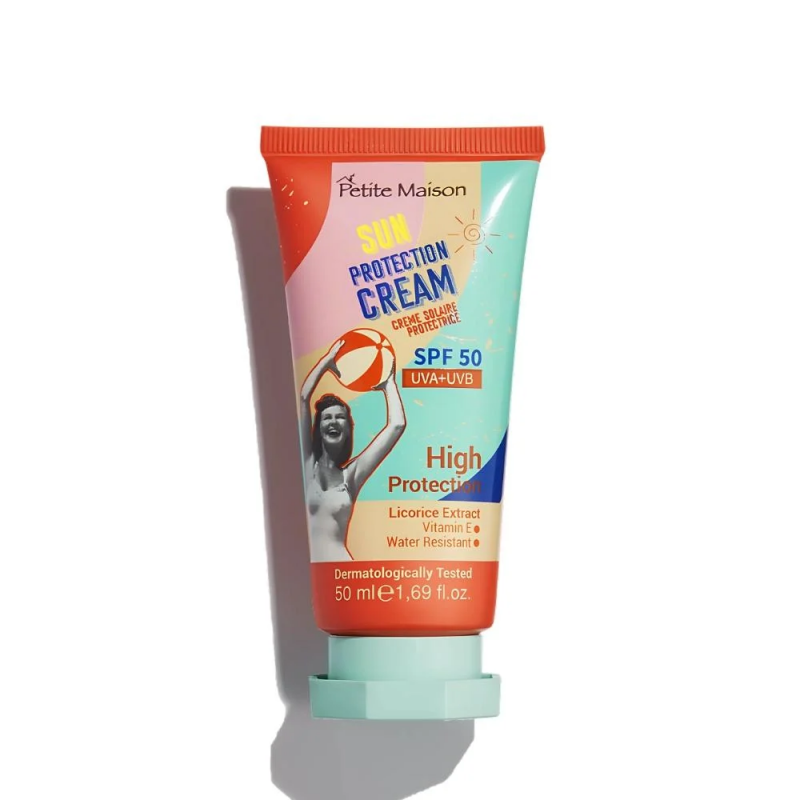 بيتيت ميزون - كريم واقي من الشمس بعامل حماية 50 درجة 50 مل يحمي بشرتك من الآثار الضارة للشمس ويساعد البشرة على التنفس بفضل تركيبته الخفيفة.
