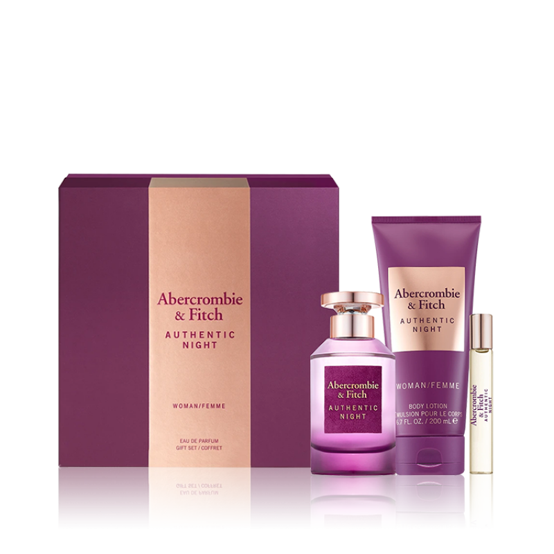 طقم ابيركرومبي آند فيتش أوثينتيك نايت ومن - أو دي بارفيوم (نسائي) 100 مل 3 قطع