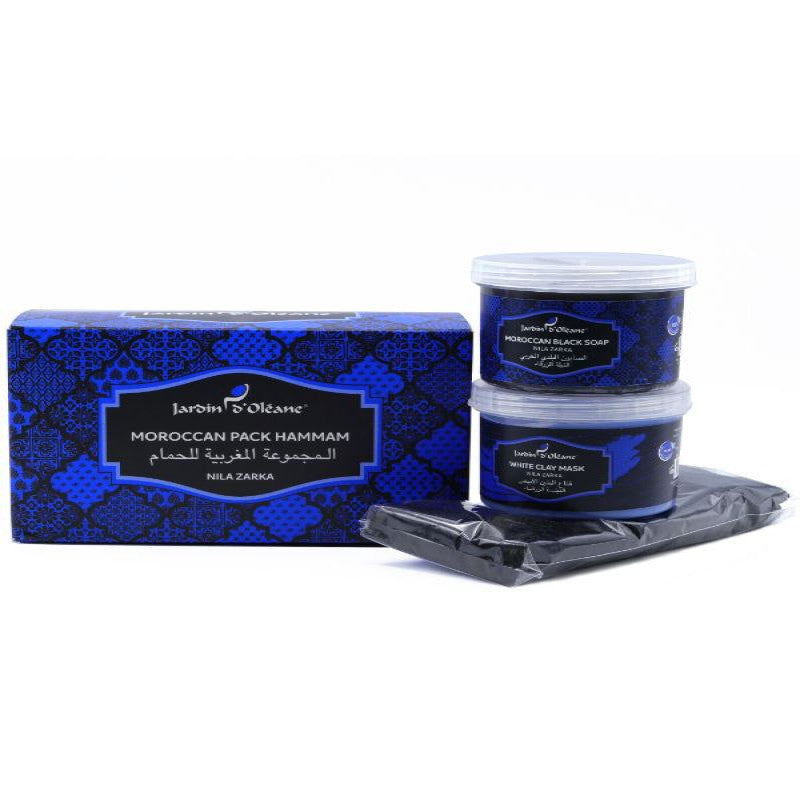 المحتوى: الصابون المغربي 80 جم، قناع الطين 100 جم، الليفة المغربية