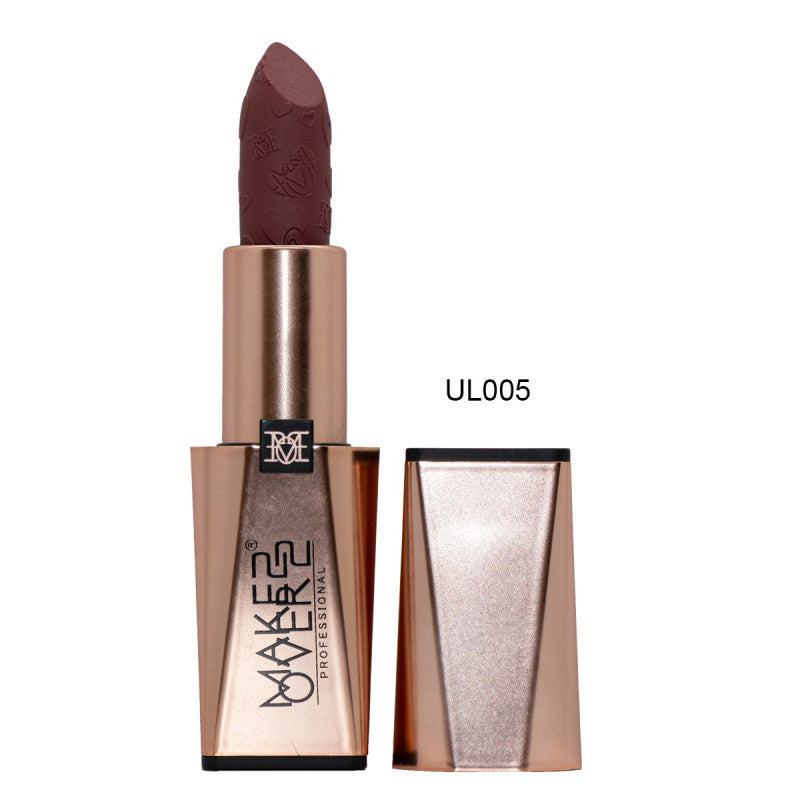 احمر شفاه مات لون من ميك اوفر 22 - UL005: احمر شفاه كريمي مخملي، ثابت ومطفيه بنسبه رطوبه واضح بسيطه لاتجفف الشفاه ابداء لاحتوائه على شمع العسل المرطب تغطية عالية، ذو لمسة نهائية مطفيه خفيف للغاية على الشفاه يعطي شفتيك احساس بالنعومة المشهورة بالجلدة الصغبره للشفاه، ثابت وتغطية شهري اليوم الوانه وقويه، لا تحتاج إلى عمل سواتش لها مثل ماهي بأحمر الشفاه هو نفسه الذي يظهر على الشايف كميته الكبيرة بالعلبه لاينتهي بسرعه، يعني توفييير وكفائة بالاستخدام