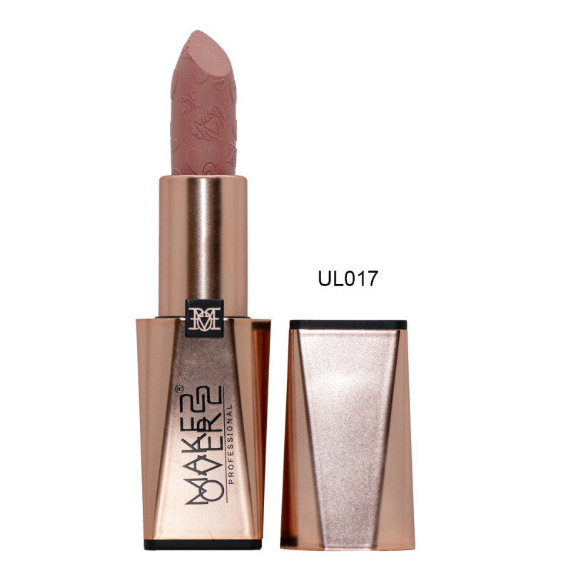 احمر شفاه مات لون من ميك اوفر 22 - UL017: احمر شفاه كريمي مخملي، ثابت ومطفيه بنسبه رطوبه واضح بسيطه لاتجفف الشفاه ابداء لاحتوائه على شمع العسل المرطب تغطية عالية، ذو لمسة نهائية مطفيه خفيف للغاية على الشفاه يعطي شفتيك احساس بالنعومة المشهورة بالجلدة الصغبره للشفاه، ثابت وتغطية شهري اليوم الوانه وقويه، لا تحتاج إلى عمل سواتش لها لان ماهي مثل بأحمر الشفاه هو نفسه الذي يظهر على الشايف كميته الكبيرة بالعلبه لاينتهي بسرعه، يعني توفييير وكفائة بالاستخدام